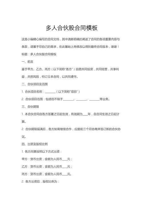 多人合伙投资合同范本需注意哪些关键条款?