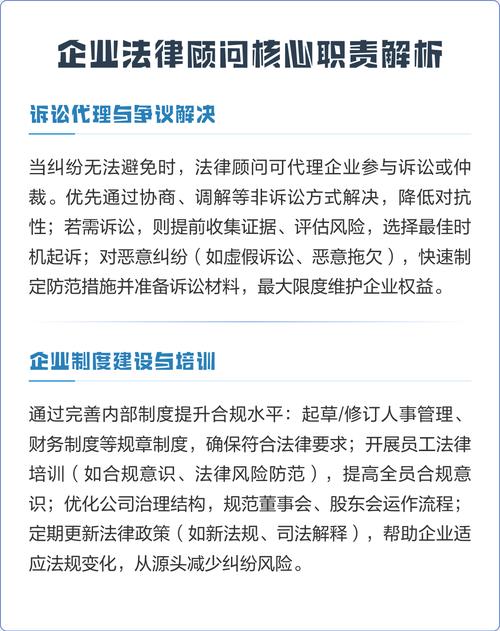 企业法律顾问制度的最新政策,本质上是国家法治建设向企业微观治理深度渗透的体现,它要求企业法律工作从边缘走向中心,从被动走向主动,从单一走向综合,企业法务部门必须主动适应这些变化,将法律风险防范转化为企业核心竞争力的一部分,才能在日益复杂和不确定的商业环境中行稳致远。