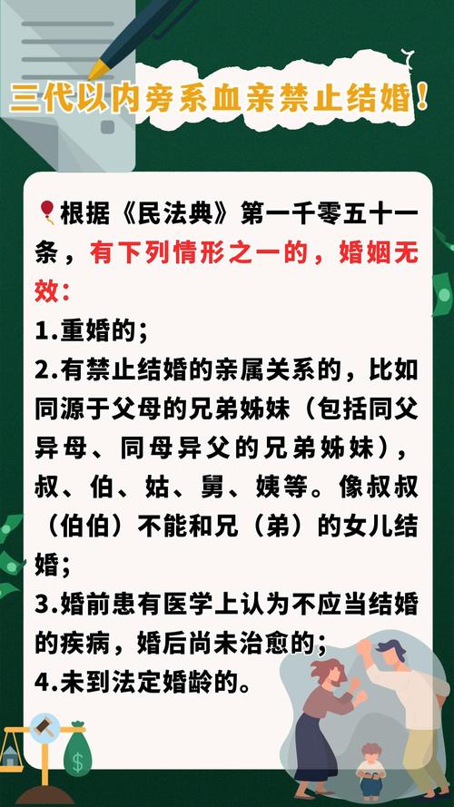 | 三代以内旁系血亲 | 绝对禁止 | 兄弟姐妹、堂/表兄弟姐妹、叔/伯/姑与侄/侄女、舅/姨与外甥/外甥女 |