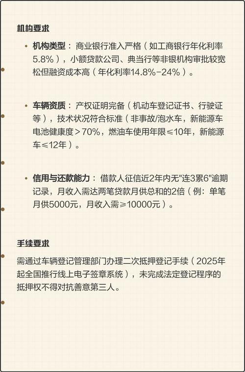 首选正规金融机构:如果车辆仍有剩余价值,首先尝试联系你的第一顺位抵押权人(如银行),咨询是否可以办理“二押”或“再融资”,银行虽然审批严格,但绝对合法安全,可以考虑有正规牌照、信誉良好的大型汽车金融公司。