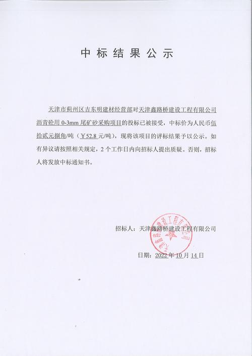 公示中标结果