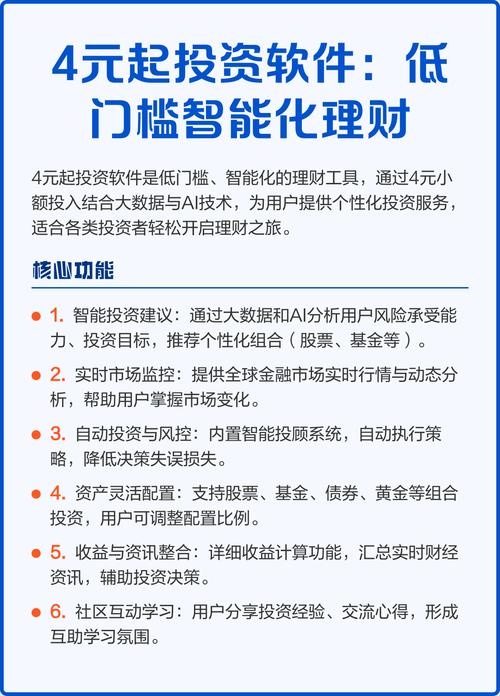 - 开立账户: 你需要一个证券账户(买股票/ETF)和一个基金账户(买基金),现在很多券商APP(如华泰证券、东方财富)和第三方平台(支付宝、微信理财通)都支持一站式开户和购买。