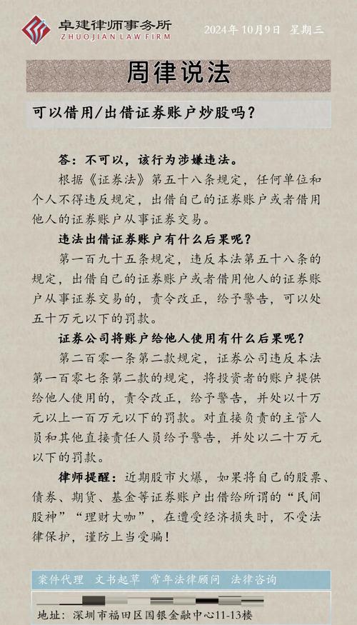 - 损害投资者利益:出借人将自己的账户置于巨大风险之中,一旦借用人进行违规操作或发生亏损,出借人将承担不可预测的法律和经济责任。