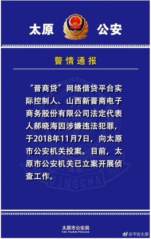 - 刑事立案: 2025年10月,太原市公安局万柏林分局对晋商贷涉嫌非法吸收公众存款案进行 立案侦查。