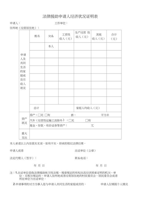 - 如何判断“经济困难”? 通常以您申请时所在地的最低生活保障标准或低收入家庭标准为参考,某地低保标准为1000元/月,如果您个人月收入低于此标准,或家庭人均收入低于此标准,就很可能符合条件。