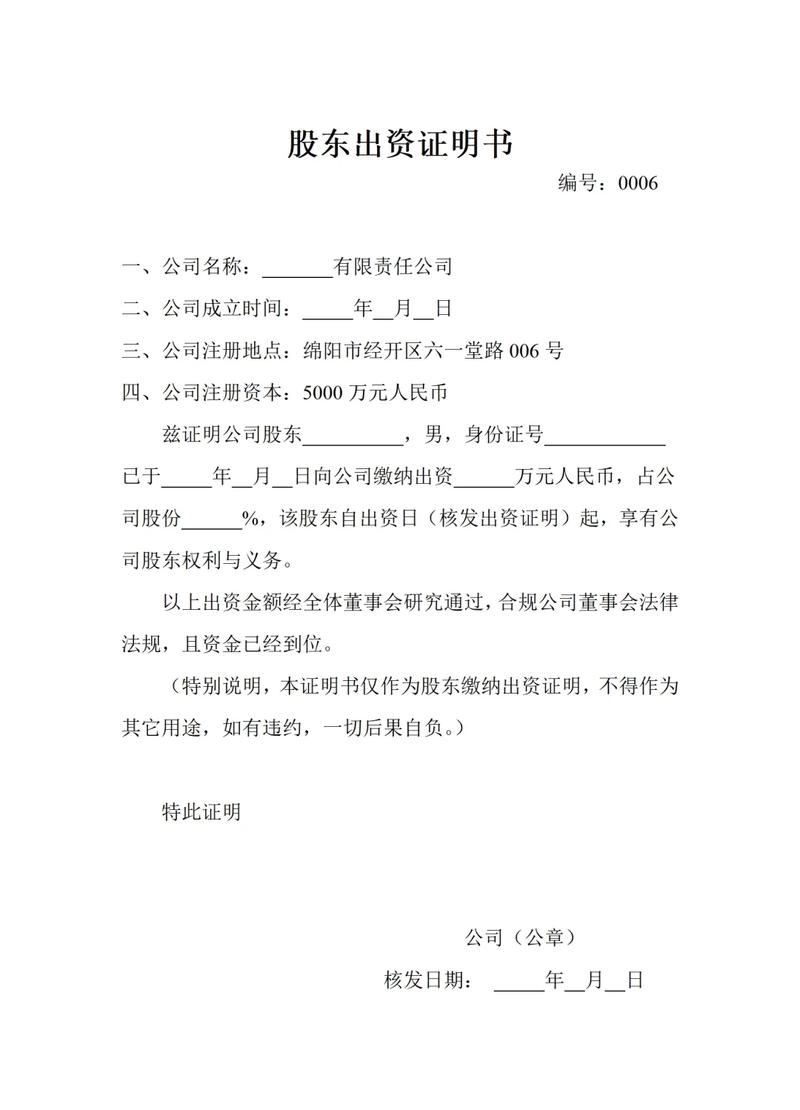 - 出资的实物资产清单(品名、规格、数量、型号等)。