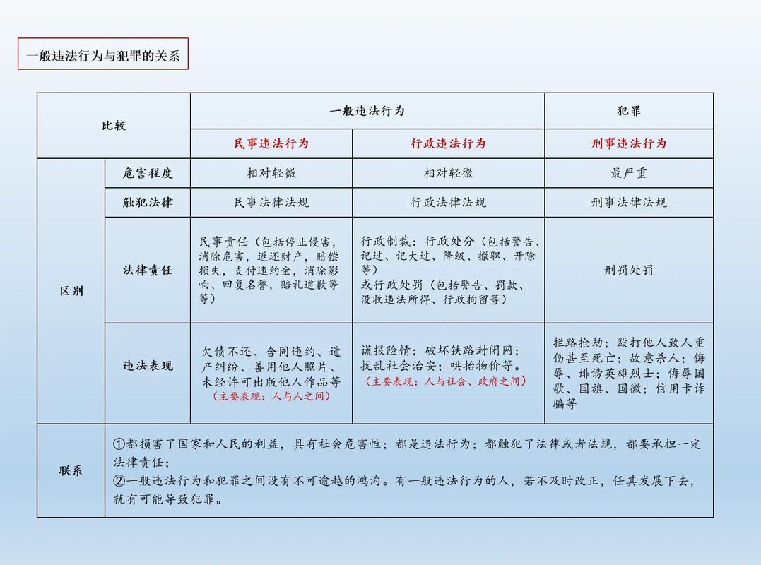 | 违法行为 | 内容违法,法律效果是对其的否定性评价。 | 侵权(打碎花盆)、犯罪(盗窃) | 否 |