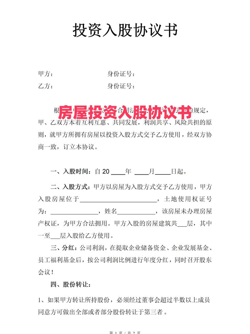 甲方(投资方): 公司名称:[投资方公司全称] 法定代表人:[姓名] 统一社会信用代码:[代码] 注册地址:[地址] 联系人:[姓名] 联系电话:[电话]