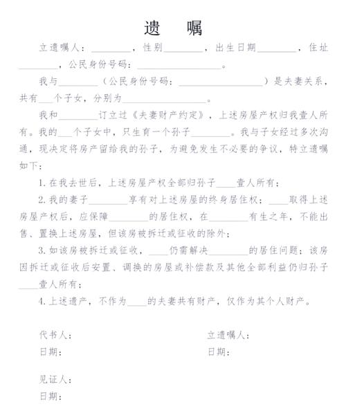 自己写的遗嘱不公证有法律效力吗? 这是一个非常常见且重要的问题,答案是:自己写的遗嘱(法律上称为“自书遗嘱”)在不经过公证的情况下,只要符合法定条件,是具有法律效力的,公证不是遗嘱生效的必要条件,而是增强其效力、避免未来纠纷的一种方式,下面为您详细解释自书遗嘱的有效条件、与公证遗嘱的区别,以及需要注意的风险, 自书遗嘱的有效条件(核...