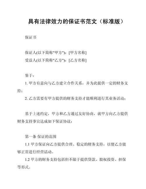 保证书有没有法律效力 这是一个非常常见且重要的问题,保证书在特定条件下是具有法律效力的,但它不是一张“万能护身符”,其法律效力需要根据具体情况进行判断,下面我将从几个方面详细解释保证书的法律效力问题, 保证书具有法律效力的核心条件一份保证书要被法院认可并具有法律效力,必须同时满足以下几个基本条件,这与合同生效的条件基本一...